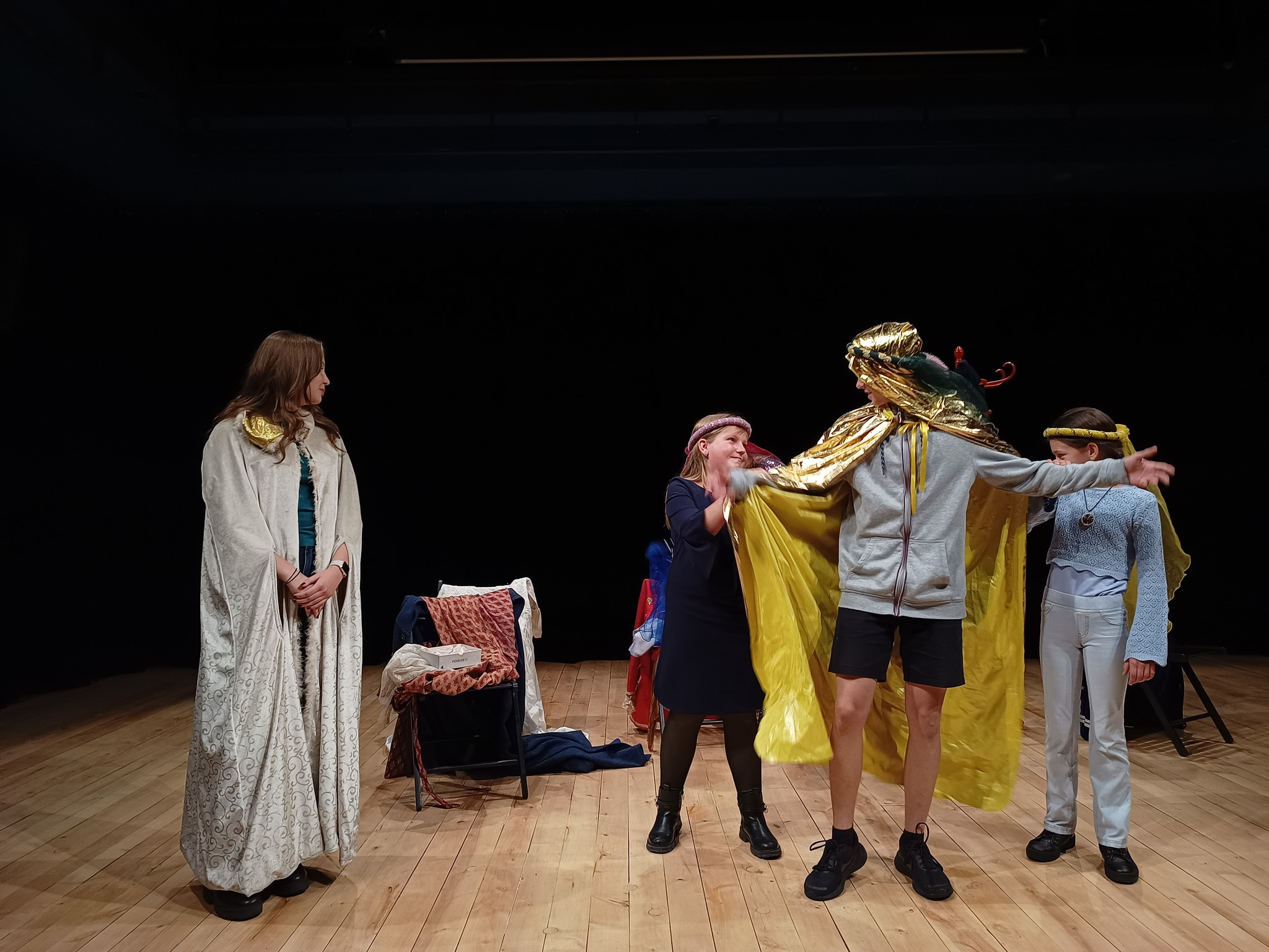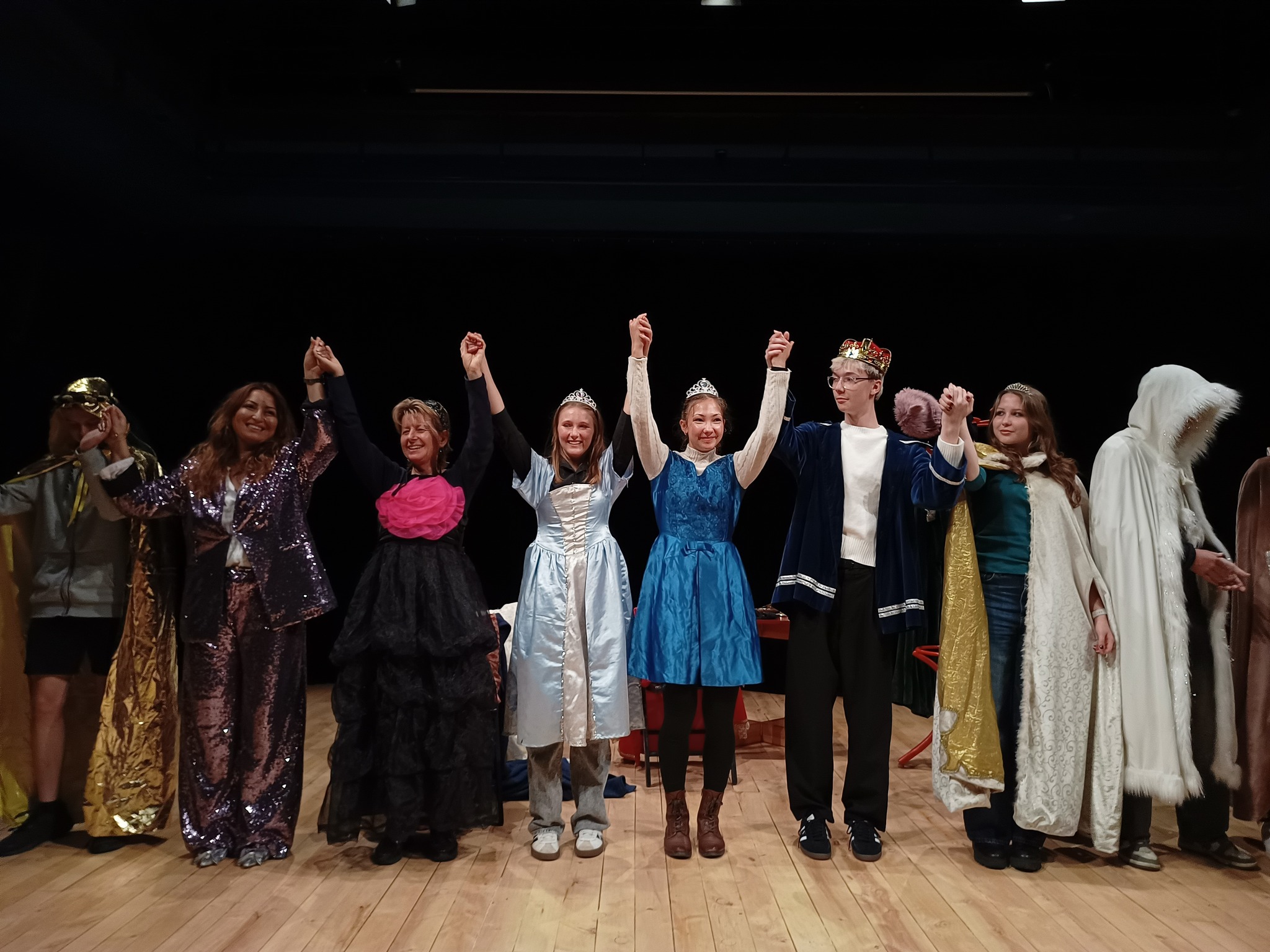 Studenti paní učitelky Komárkové ze sexty společně s dobrovolníky ze septimy se dne 6.10. 2025 vydali za jedinečným zážitkem do interaktivního německého divadla, kde ožila známá pohádka Aschenputtel (Popelka). Nešlo ale jen o pasivní sledování děje – studenti se aktivně zapojili do představení, komunikovali německy s paní vypravěčkou Helenou, a někteří si dokonce vyzkoušeli roli přímo na jevišti! Smích, napětí i trocha improvizace, to všechno spojilo zábavu s učením a ukázalo, že jazyk se dá učit i jinak než jen z učebnice. Děkujeme divadlu za skvělou atmosféru a studentům za odvahu vstoupit do pohádkového příběhu – kdo ví, třeba mezi námi máme budoucí hvězdy německého divadla!