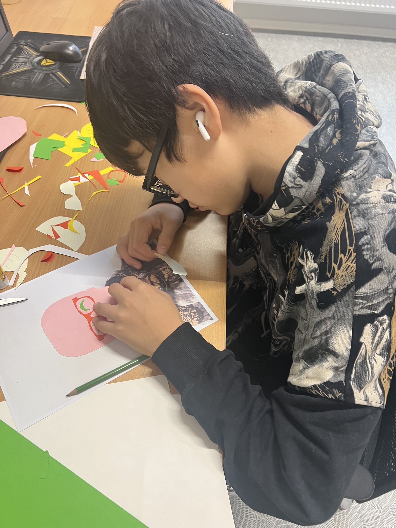 Žáci 1RG se pustili do kreativní výzvy! Pomocí barevných papírů tvořili koláže, kterými ztvárnili své vlastní portréty. Vznikla tak pestrá díla plná nápadů, fantazie a osobitého stylu.