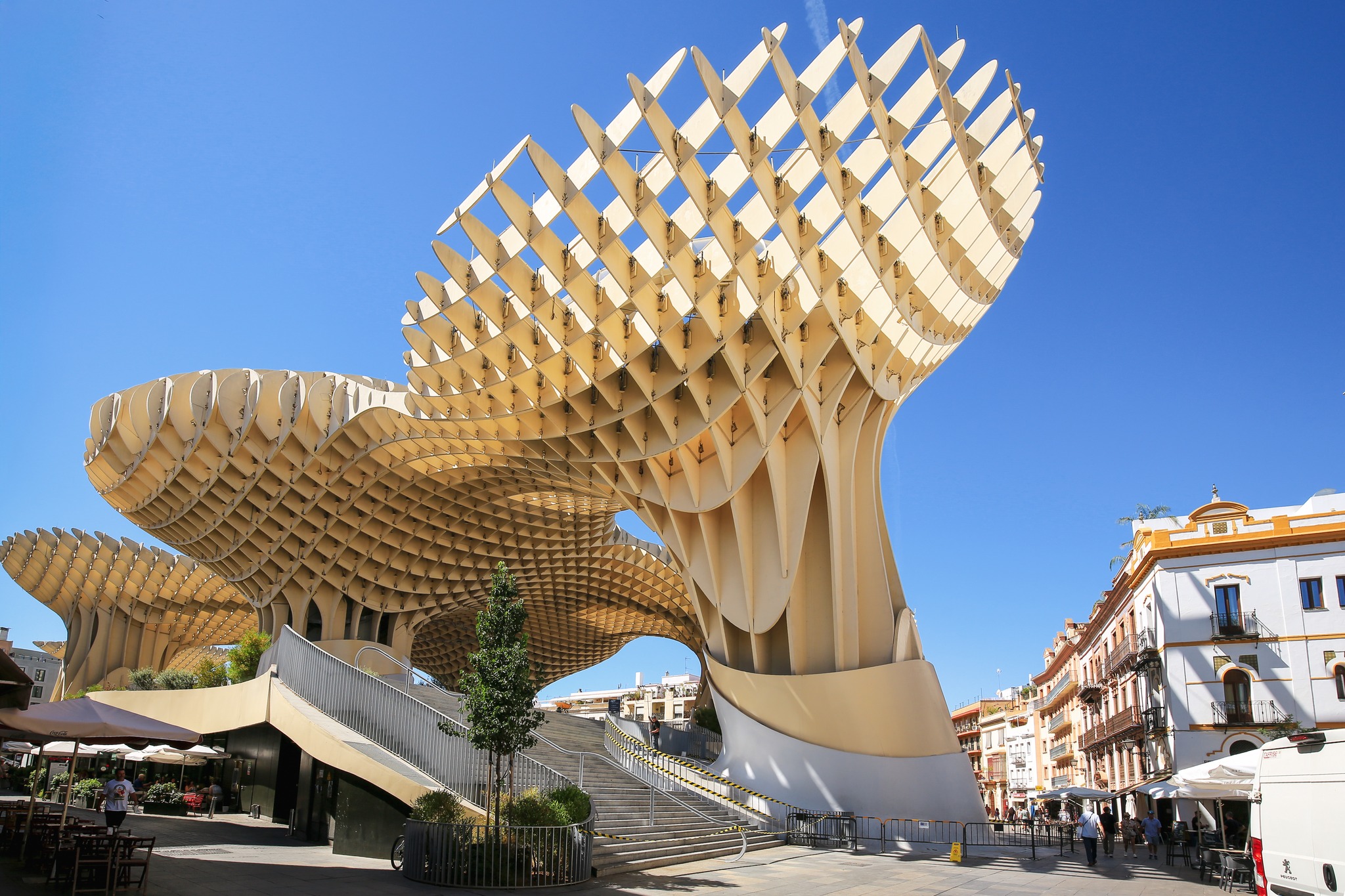 Dalším fascinujícím místem je Las Setas („Houby“), neboli Metropol Parasol. Jedná se o největší dřevěnou konstrukci na světě. Pod stavbou se nachází muzeum a tržnice. Také výtah, který nás vyveze na horní promenádu, odkud je nádherný výhled na město, zejména večer, kdy vše září. Zde nás oslovil mladý muž, jehož přítelkyně čekala nahoře – chtěl ji požádat o ruku. Nervózně nás poprosil o pár fotek, což jsme s radostí splnili. Studenti fotografie fotí zásnuby ve Španělsku – co víc si přát při studijním Erasmu+?