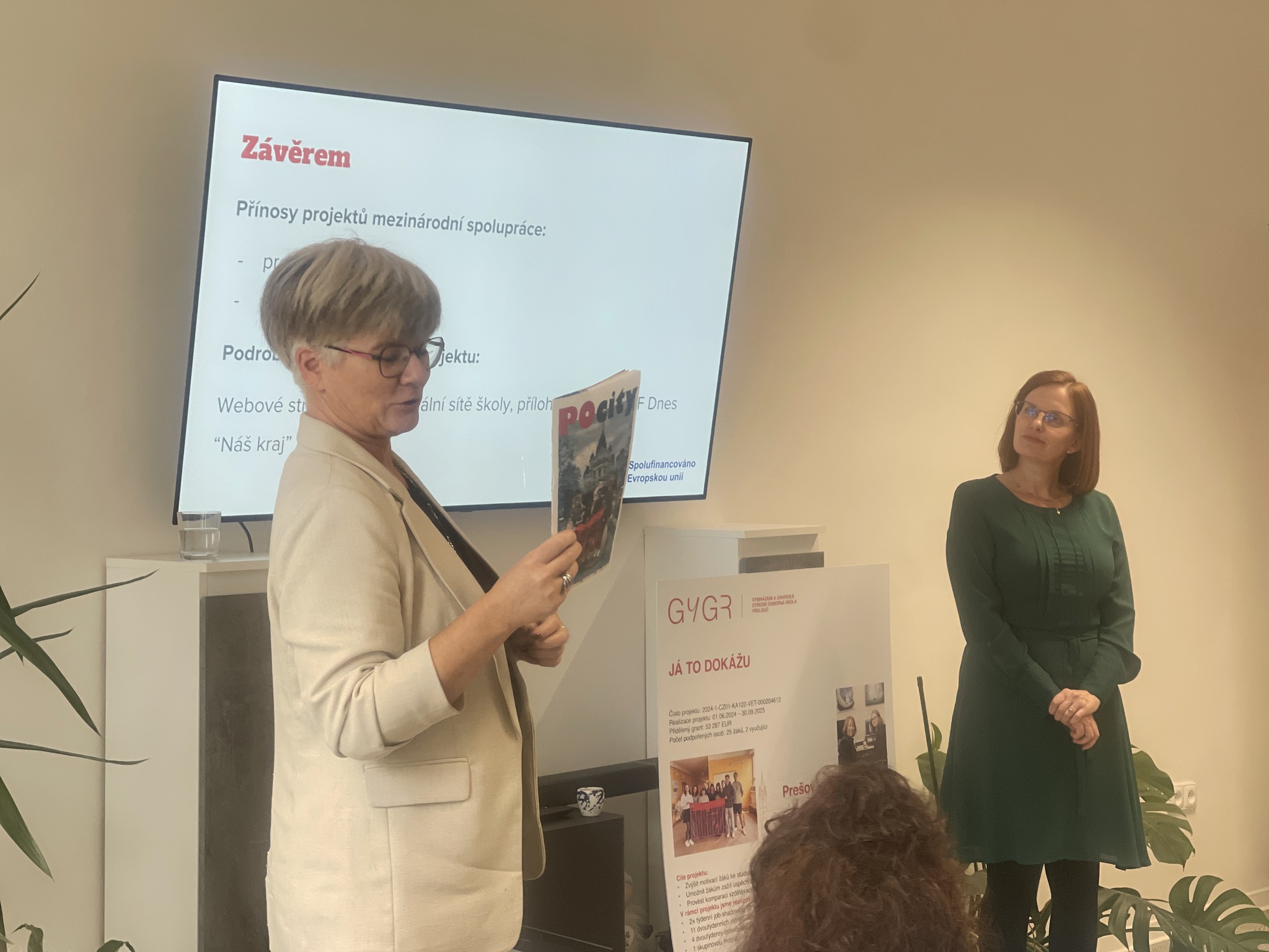 Dne 25. 9. jsme slavnostně uzavřeli náš projekt Erasmus+ „Já to dokážu“. Uspořádali jsme závěrečnou konferenci, které se účastnili vyučující z partnerské školy - Školy uměleckého priemyslu Prešov, naši žáci, učitelé, účastníci mobilit i zástupci města Přelouč.