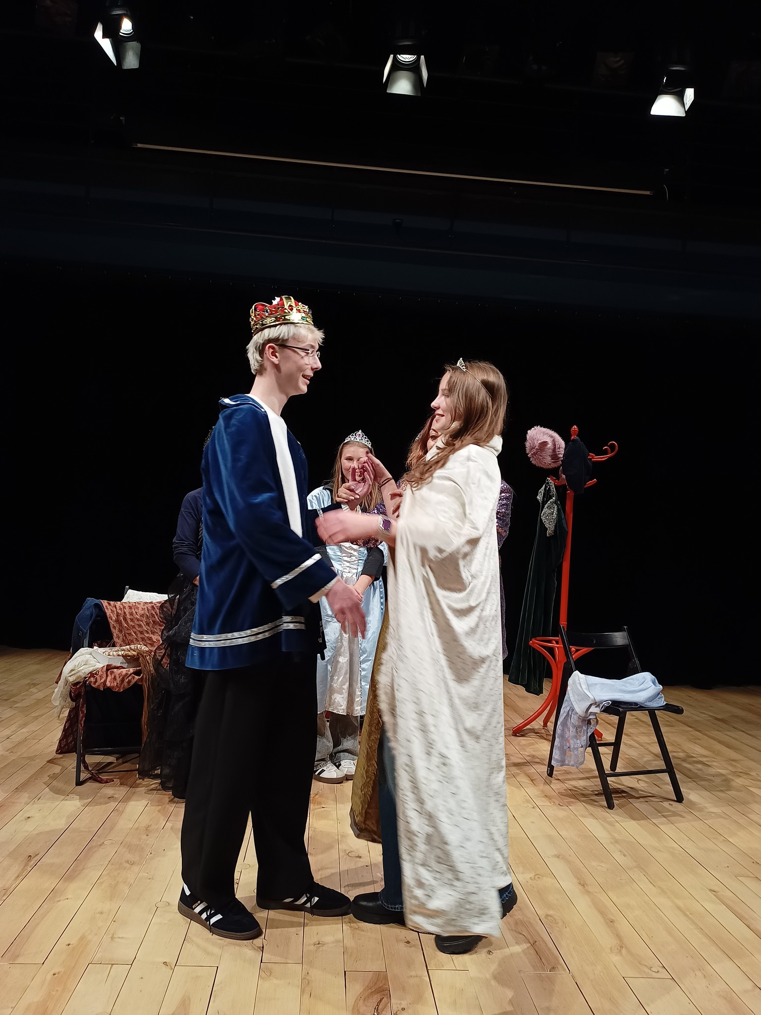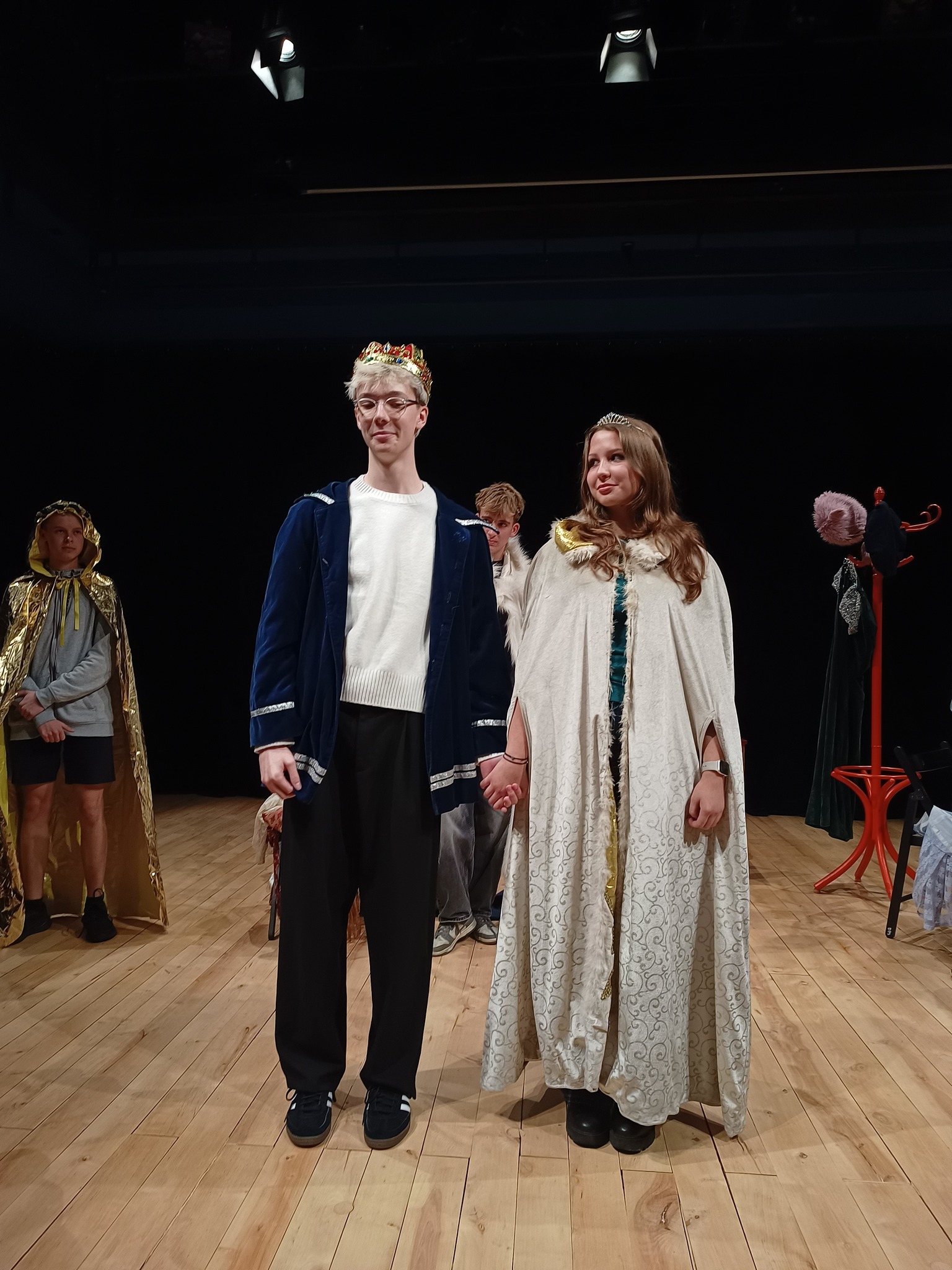 Studenti paní učitelky Komárkové ze sexty společně s dobrovolníky ze septimy se dne 6.10. 2025 vydali za jedinečným zážitkem do interaktivního německého divadla, kde ožila známá pohádka Aschenputtel (Popelka). Nešlo ale jen o pasivní sledování děje – studenti se aktivně zapojili do představení, komunikovali německy s paní vypravěčkou Helenou, a někteří si dokonce vyzkoušeli roli přímo na jevišti! Smích, napětí i trocha improvizace, to všechno spojilo zábavu s učením a ukázalo, že jazyk se dá učit i jinak než jen z učebnice. Děkujeme divadlu za skvělou atmosféru a studentům za odvahu vstoupit do pohádkového příběhu – kdo ví, třeba mezi námi máme budoucí hvězdy německého divadla!