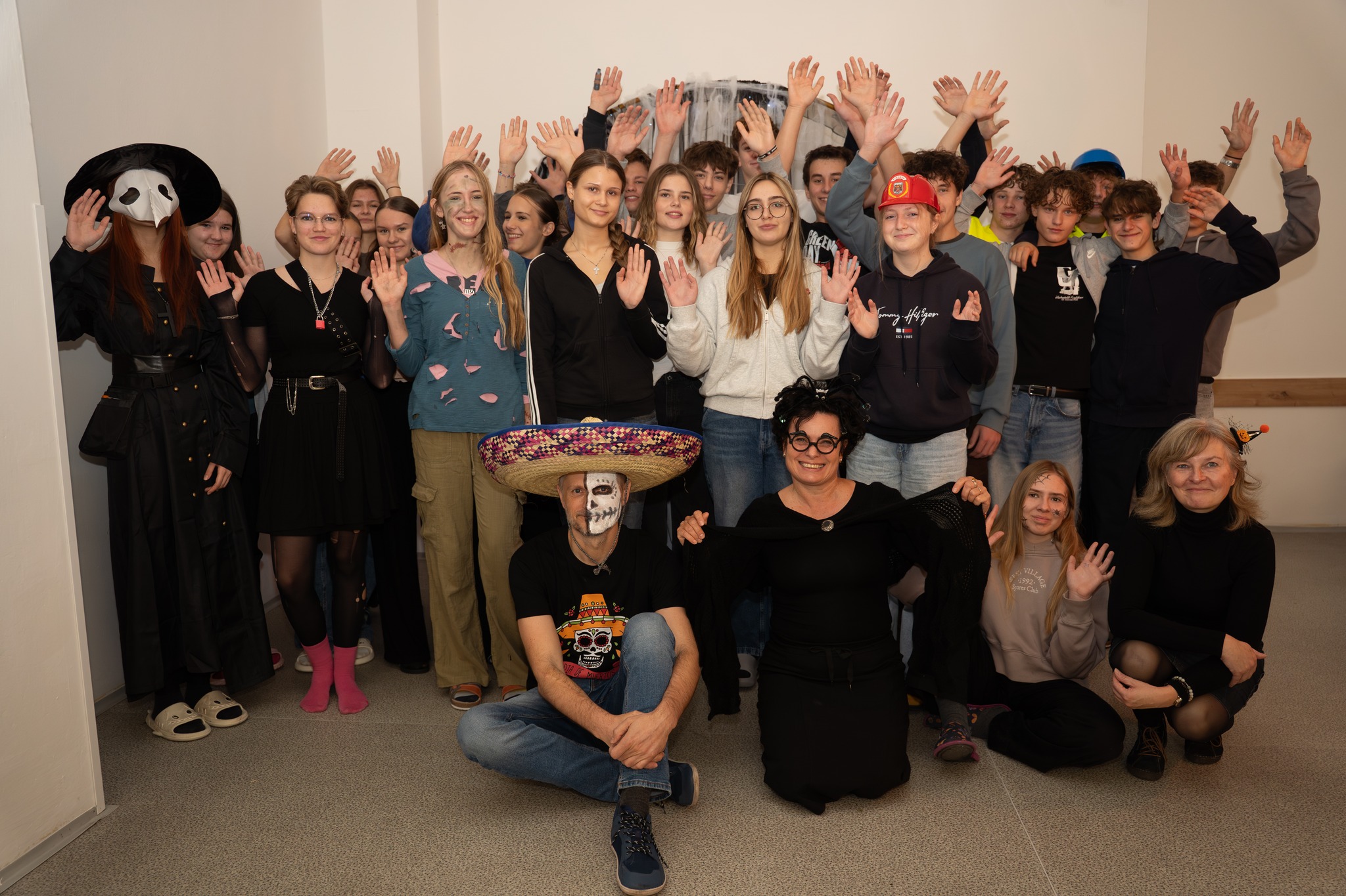 24. října se nad GYGRem zatáhlo nebe… Školní chodby se naplnily čarodějnicemi, duchy a dalšími bytostmi z jiného světa. Třída 1RMF si pro všechny připravila halloweenský fotokoutek, kde zachytila ty nejděsivější i nejvtipnější momenty!