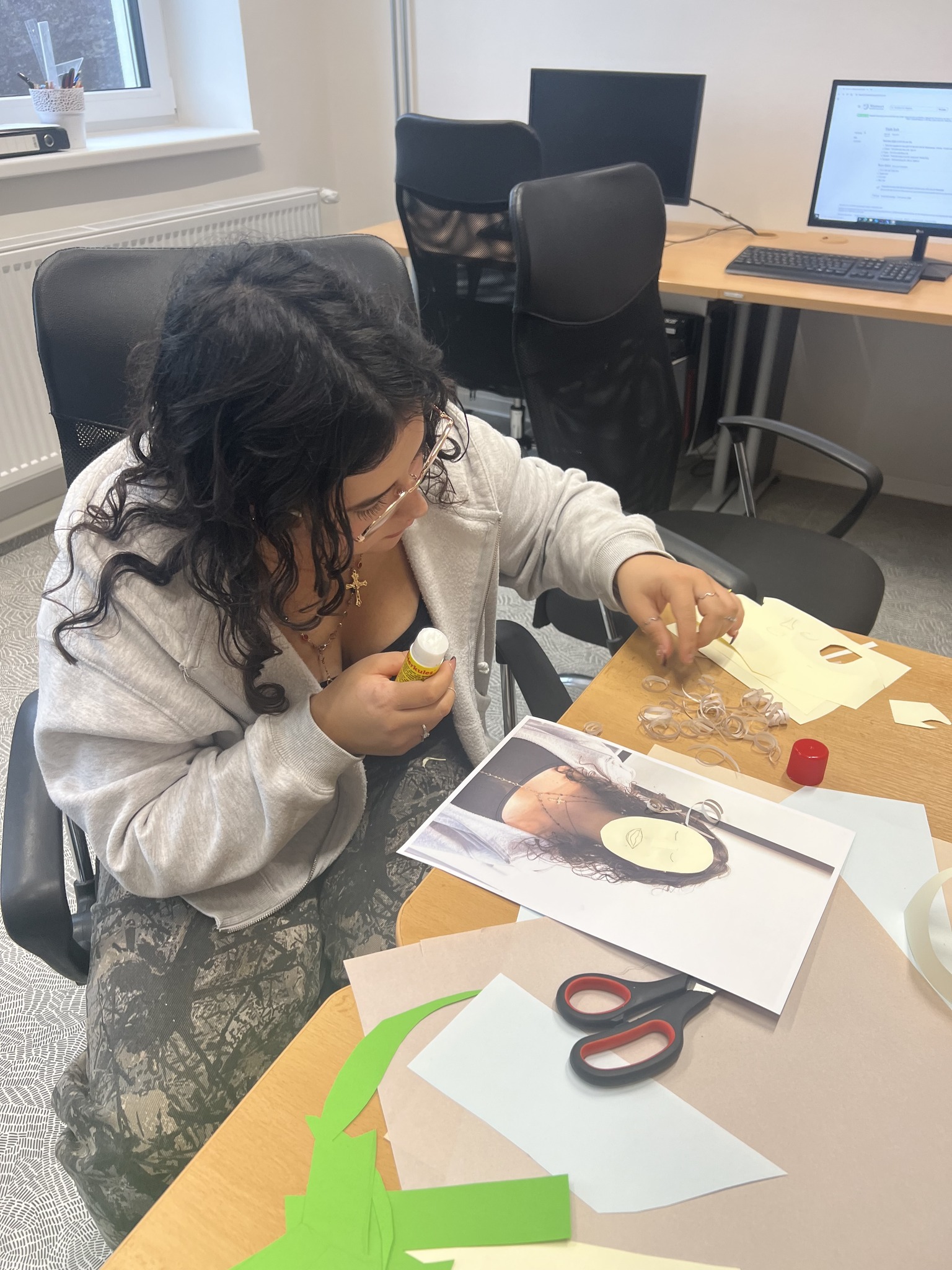 Žáci 1RG se pustili do kreativní výzvy! Pomocí barevných papírů tvořili koláže, kterými ztvárnili své vlastní portréty. Vznikla tak pestrá díla plná nápadů, fantazie a osobitého stylu.