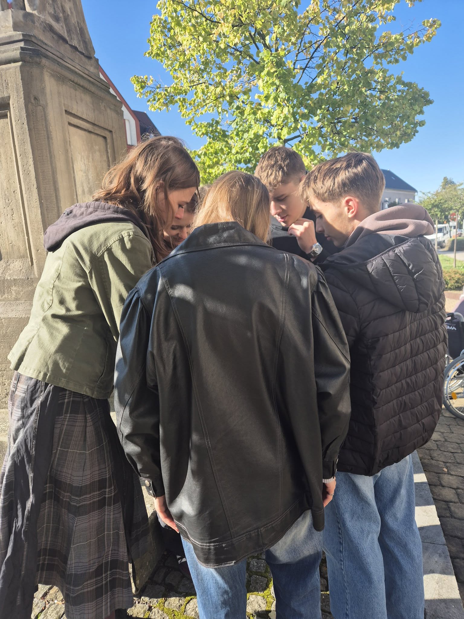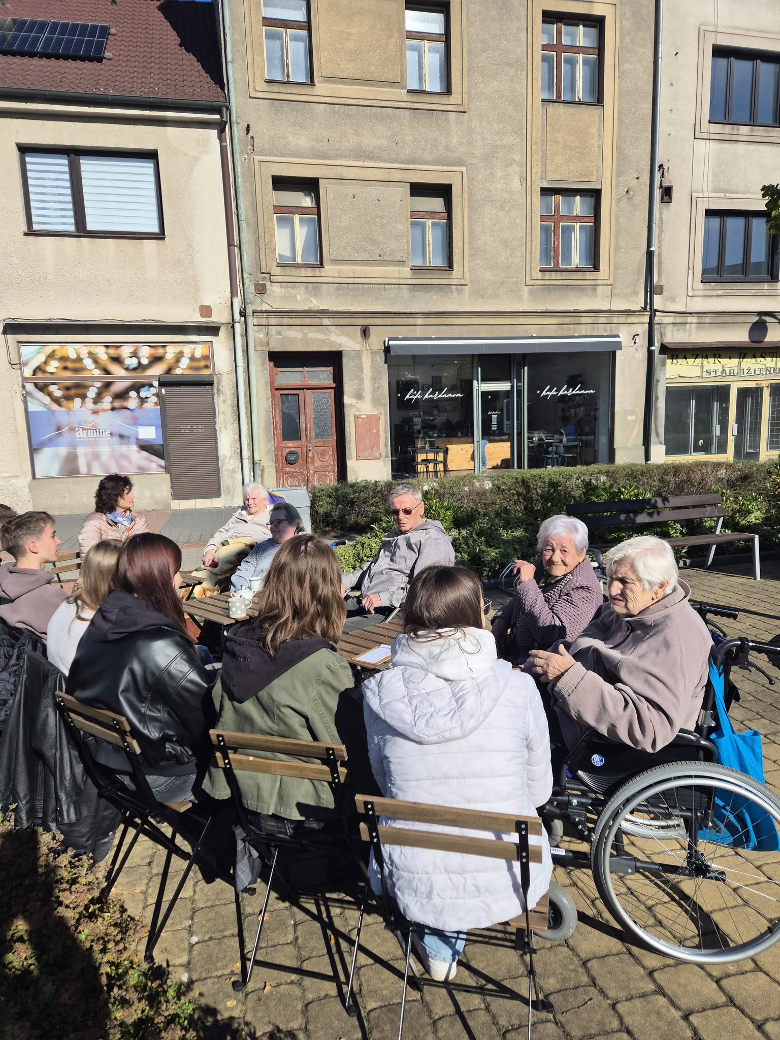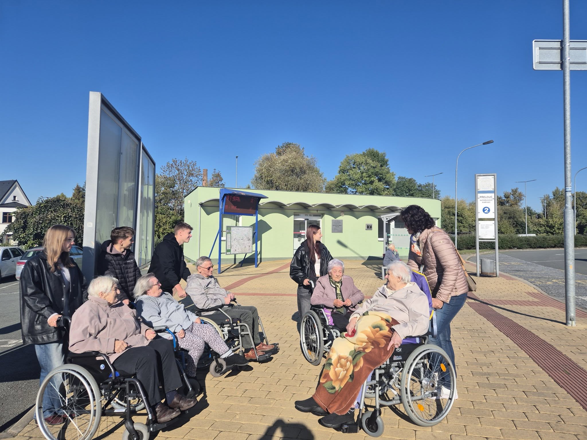 V rámci Týdne sociálních služeb, který probíhal 29. 9. — 5. 10. 2025, strávili žáci sexty dopoledne s klienty z přeloučského Domova u fontány. Protože se jedná většinou o vozíčkáře, dostali naši žáci instrukce, jak mají s vozíkem manipulovat a bezpečně zacházet. Ve skupinkách se pak se seniory rozjeli po Přelouči a rozvezli malované kamínky. Během této procházky si prohlédli Přelouč, navzájem si povídali a někteří poseděli na Václavském náměstí a vypili si společně kávu nebo limonádu. Tato akce se moc vydařila. Děkuji sextánům za jejich vstřícný a empatický přístup a ochotu se této akce zúčastnit.