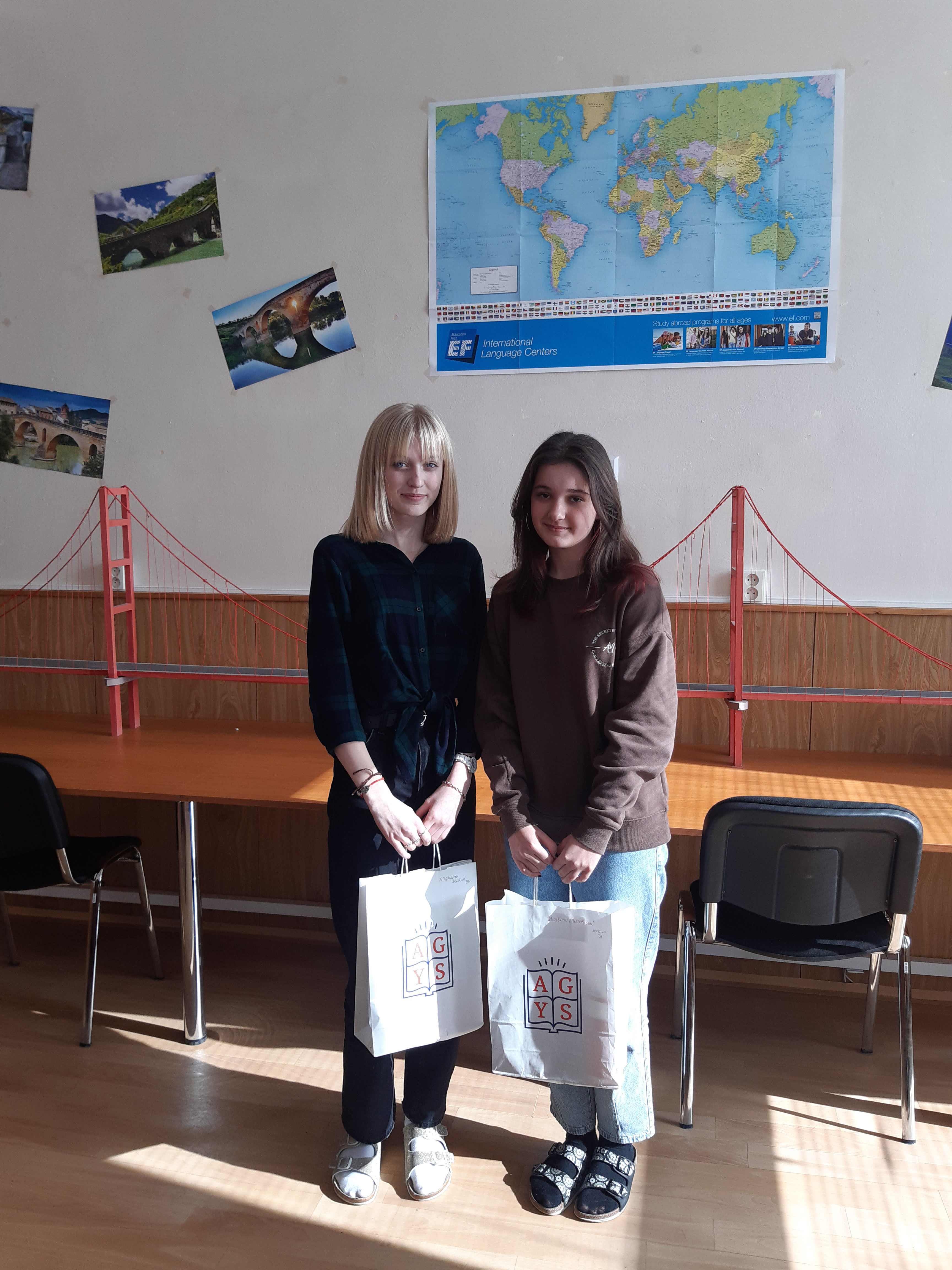 V lednu 2022 se na Anglickém gymnáziu v Pardubicích opět uskutečnila soutěž Agyslingua, tentokrát znovu on-line formou. Naši školu reprezentovaly žákyně Barbora Nešetřilová (třída tercie) v kategorii B1 a Magdalena Sobotková (třída kvarta) v kategorii B1+.