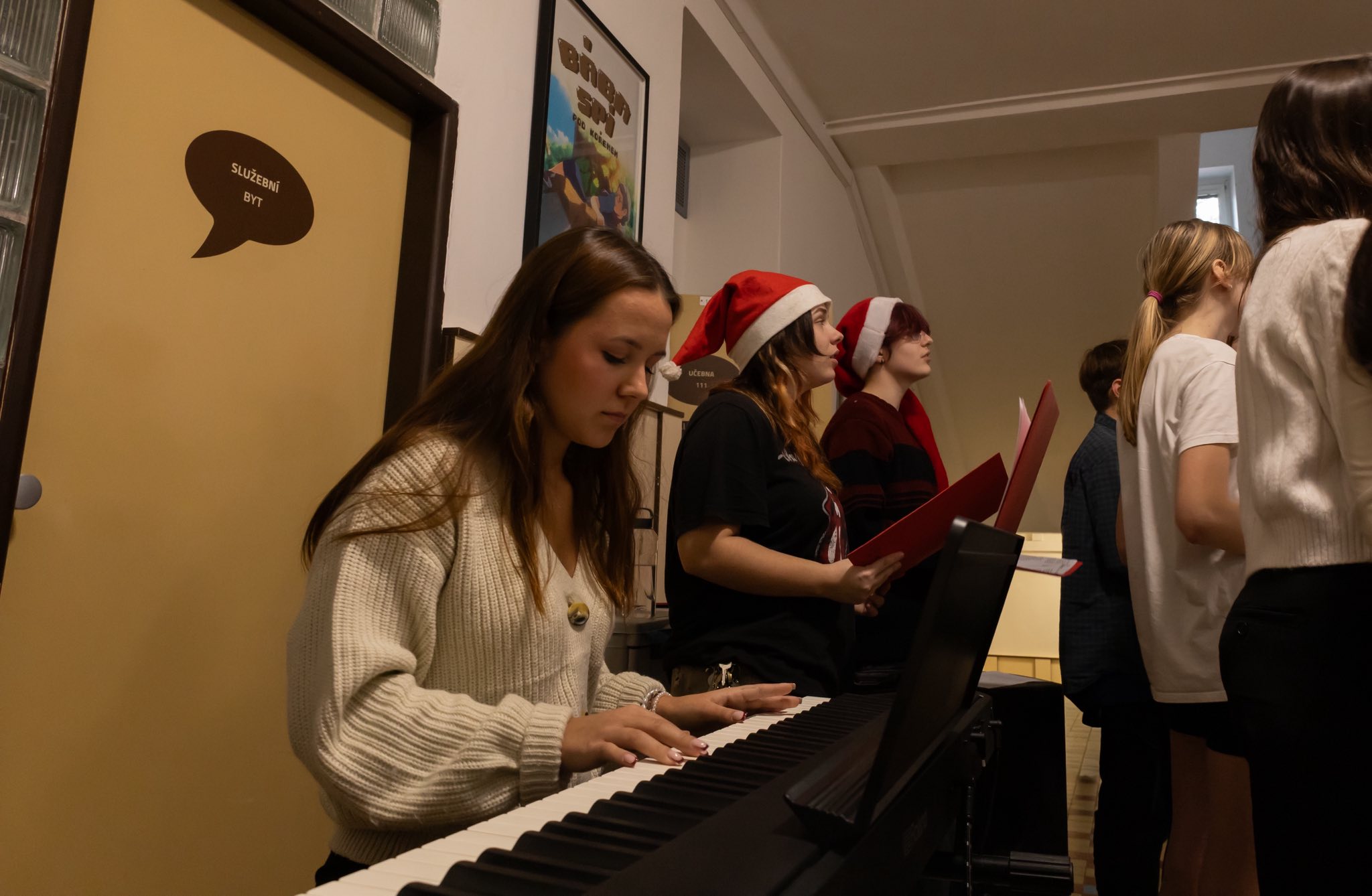 Na budově teoretického vyučování jsme si společně užili chvíli klidu a sváteční atmosféry, o kterou se postaralo naše školní hudební těleso Gygráček. Zaznělo několik krásných vánočních písní a my jsme si tak mohli užít milé setkání před Vánocemi a příchodem nového roku.